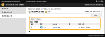 ![]() | 您可以使用遠端使用者介面來列印、傳送或刪除儲存在信箱中的檔案,或是暫時儲存在 I-Fax 收件匣中的 I-faxes。 |