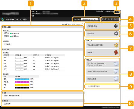 部分顯示項目與功能只有在以管理員權限身分登入時才可使用。 如果有多個使用者同時操作遠端使用者介面,或本機控制面板與遠端使用者介面同時操作,則最後執行的操作會生效。 |