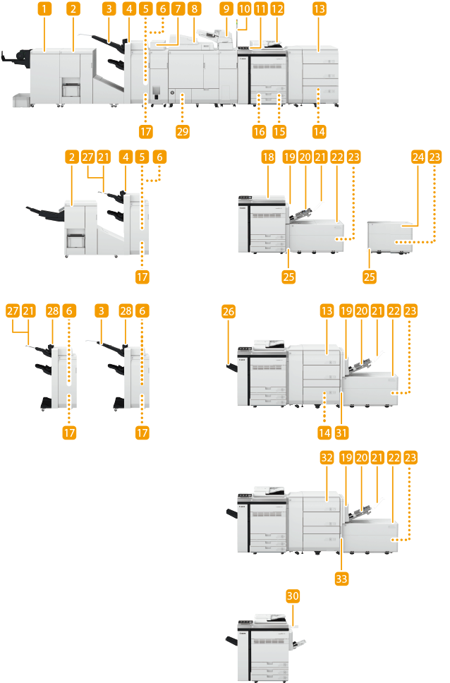 若已將「專業裝訂機連續組件-B」安裝至「專業裝訂機-F」,就能隨時執行紙張輸出。