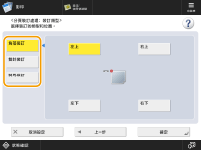 視完稿功能而定,可能需要安裝選購配件裝置。 選購設備只有在設定「雙面影印」時才能設定 <騎馬裝訂>。 在 <存取已儲存檔案> 中進行設定時只有在列印 PDF/XPS 檔案或信箱中儲存的檔案時,才能使用完稿功能。 |