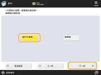只有在同時安裝裝訂機與「High Capacity Stacker-J」時,才會顯示此畫面。若未顯示此畫面,請繼續前往下一個步驟。