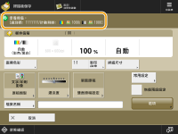 如果使用部門識別碼管理設定頁面限制,則會顯示剩餘頁數。如需設定部門識別碼管理及頁面限制的詳細資訊,請參閱 指定部門識別碼管理設定。 |