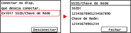 Pressione [Exibir SSID/Chave de Rede] para verificar o SSID e a chave de rede da máquina.