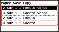 Panneau de commandeL'écran [Paper Save Copy] s'affiche.