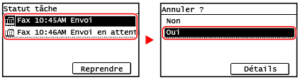 Si l'écran de la liste des tâches s'affiche, sélectionnez la tâche à annuler, puis appuyez sur [Oui].