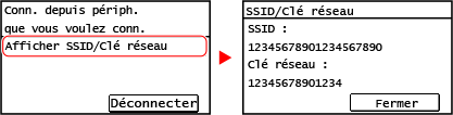 1 | Appuyez sur [Afficher SSID/Clé réseau] pour vérifier le SSID et la clé réseau de l'appareil. |