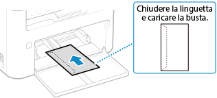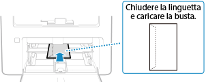 Inserire le buste N. 10 (COM10), Monarch, ISO-C5 o DL dal lato corto con il lato anteriore (lato senza colla) rivolto verso l'alto. Inserire le buste con la linguetta chiusa e sul lato sinistro.