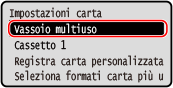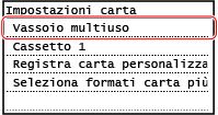 Se si utilizza sempre la stessa carta nel vassoio multiuso, è possibile registrare il formato e il tipo di carta. Ciò evita di visualizzare la schermata delle impostazioni della carta e di configurare le impostazioni.