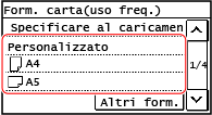 Premere [Altri form.] e selezionare il formato carta dall’elenco visualizzato.