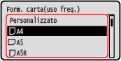 È possibile modificare il formato carta visualizzato sullo schermo nel passaggio 3. Come nascondere i formati carta non utilizzati |