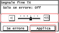 Per emettere un suono di completamento solo quando si verifica un errore, premere [Se errore] e impostare su [On].