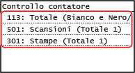 Consente di visualizzare il numero totale di pagine copiate e stampate in bianco e nero.