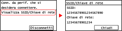 1 | Premere [Visualizza SSID/Chiave di rete] per verificare l'identificativo SSID e la chiave di rete della macchina. |