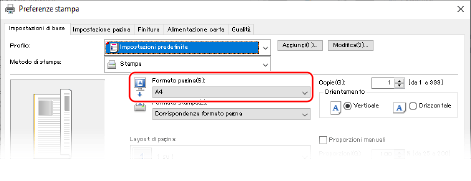 Quando si stampa su carta in un formato diverso da [Dimensioni pagina]