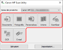 Fare clic su [ScanGear] per visualizzare ScanGear MF e configurare le impostazioni avanzate di scansione. Per maggiori informazioni, fare clic su [