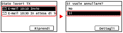 Se viene visualizzata la schermata dell'elenco lavori, selezionare il lavoro da annullare e premere [Sì].