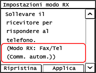 Ricezione di faxÈ possibile configurare anche la ricezione automatica dei fax dopo che la macchina ha suonato per un determinato lasso di tempo.