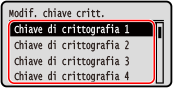 4 | Selezionare una chiave di crittografia non registrata e premere .![]() Viene visualizzata la schermata per l’inserimento della chiave di crittografia. |