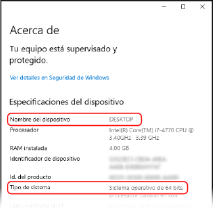 Si el ordenador tiene un sistema operativo de 32 bits, se muestra "Sistema operativo de 32 bits".