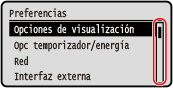 Si aparece la barra de desplazamiento en la pantalla, indica que hay elementos o información que no pueden mostrarse por completo en la pantalla. Utilice  o para desplazar la pantalla en la dirección pulsada. El elemento seleccionado actualmente se invierte.