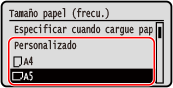 Al cargar papel de tamaño no estándar (tamaño personalizado)
