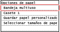 Panel de controlAparecerá la pantalla [Opciones de papel].