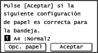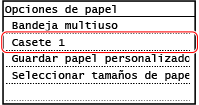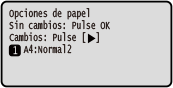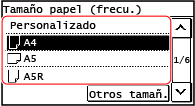 Podrá cambiar el tamaño de papel mostrado en la pantalla en el paso 3. Ocultar tamaños de papel que no se usan |