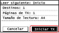 Una vez finalizado el escaneado de todos los originales, pulse [Iniciar TX].