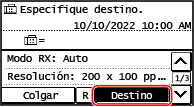 Introduzca el número de fax con las teclas numéricas o seleccione el destino registrado en la Libreta de direcciones pulsando [Destino].