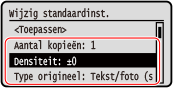 Selecteer het standaard instel-item dat u wilt wijzigen.