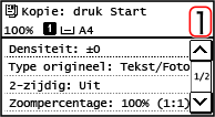 1 | Leg het volgende origineel op de glasplaat en druk op  op het bedieningspaneel. Het volgende origineel wordt gescand en hetzelfde scherm wordt weergegeven. Herhaal dit proces tot het scannen van alle originelen voltooid is. U kunt op [Densiteit]  en [Type origineel]  drukken om de instellingen voor elk origineel te wijzigen. Als het origineel andere afmetingen heeft, kan een deel van de afbeelding ontbreken, of kan de afbeelding kleiner op het papier worden afgedrukt. |