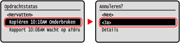 Als het scherm met de taaklijst verschijnt, selecteer dan de taak die u wilt annuleren, selecteer [<Ja>] en druk op
