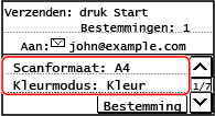 Controleer of de bestemming klopt en druk dan op [Start scann.].