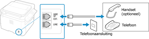 Als u een telefoon met faxfunctie aansluit, zet dan op de telefoon beslist de instelling voor automatische faxontvangst uit.