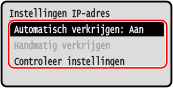1 | Selecteer [Automatisch verkrijgen] en druk op .Het scherm [Automatisch verkrijgen] verschijnt. |