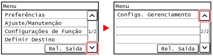 Quando uma barra de deslocamento é apresentada, isto significa que existem alguns itens ou informações que não são apresentados no ecrã. Prima [