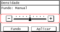 Toque nos botões [+] e [-] para ajustar o valor. Quando o cursor for apresentado, conforme indicado abaixo, pode arrastá-lo para a esquerda ou direita para ajustar o valor.