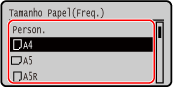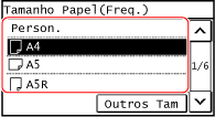 Quando são registados tamanhos de papel não padrão utilizados frequentemente, o tamanho registado é apresentado como o tamanho de papel. Registar papel de tamanho não padrão (Papel personalizado)
