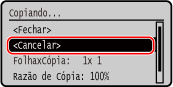 Siga as instruções apresentadas no ecrã para cancelar uma operação de cópia.