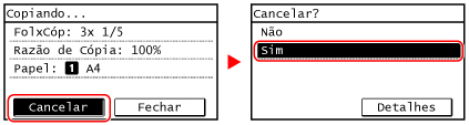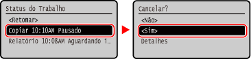 Se o ecrã da lista de trabalhos for exibido, selecione o trabalho que pretende cancelar, e selecione [<Sim>] e prima
