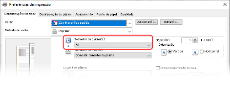 Em [Tamanho da página] no separador [Configurações básicas], selecione o tamanho de papel do documento.
