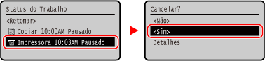 Se o ecrã da lista de trabalhos for exibido, selecione o trabalho que pretende cancelar, e selecione [Sim], prima