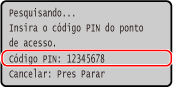 Quando o router de LAN sem fios é compatível com o modo de código PIN de WPS, pode estabelecer uma ligação registando um código PIN gerado na máquina para o router de LAN sem fios. Utilize um computador para registar o código PIN.