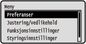 på kontrollpanelet. Menyelementer for innstillingerModell med berøringspanel ![]() | Modell med LCD-skjerm med 5 linjer ![]() |