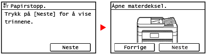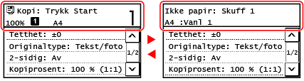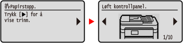 Eksempel på visning: Når det oppstår en feil Modell med berøringspanel ![]() Modell med LCD-skjerm med 5 linjer ![]() |