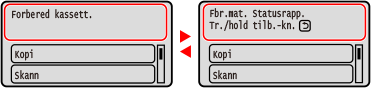 Når en melding vises nederst på skjermen Hvis meldingen er for lang til å vises på én gang, kan den bli delt inn i mindre deler og vises vekselvis. Modell med berøringspanel ![]() Hvis [ ] vises øverst på skjermen, kan du trykke på [ ] for å vise og sjekke varselet.Modell med LCD-skjerm med 5 linjer ![]() |