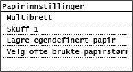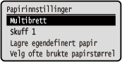 (Papirinnstilling-tast) på kontrollpanelet.Modell med berøringspanel ![]() | Modell med LCD-skjerm med 5 linjer ![]() |