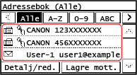 Når du angir mottakere ved å hente opp adresseboken fra skjermbildet [Hjem]eller skjermbildet for skanning eller faks, bruker du mottakerlisten.