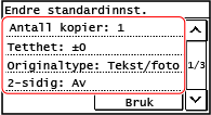 Ved å konfigurere innstillingene som standard eller for å f.eks. spare papir, kan du øke arbeidseffektiviteten og redusere kostnader.