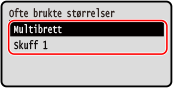 Trykk på [Velg ofte brukte papirstørrelser].